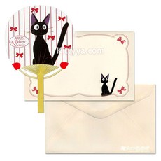 고양이 지지 원형 대나무부채 + 봉투 set (리본)