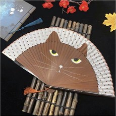 샤방 깜찍한 고양이 수공예 접이식부채 고급케이스포함 3컬러