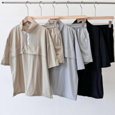 남녀공용 아노락 오버핏 반팔티 반바지 트레이닝 세트 남자 여자 스판 반팔 반집업 셋업 (MDSE668LJ) 19800원