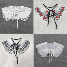 레이스 넥케이프 페이크 카라 탈부착 유럽 스타일 쉬폰 칼라 더블 레이어 꽃 자수 24900원