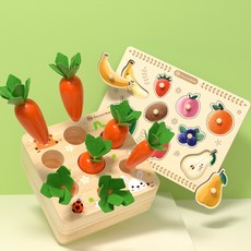 고려베이비 도형끼우기 크기분별 당근뽑기 돌 두돌 아기장난감 원목 유아 교구, 당근뽑기+신상과일 32800원